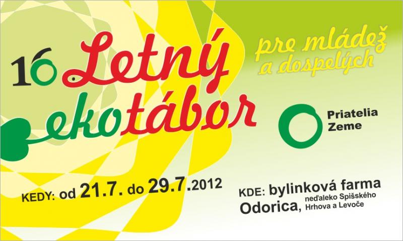Pozývame Vás na tohtoročný, už 16. ročník Ekotábora Priateľov Zeme. Opäť sa vraciame na bylinkovú farmu Odorica s krásnym výhľadom na Vysoké Tatry, už v tradičnom čase na konci júla. Príďte sa naučiť niečo zaujímavé, vyskúšať si rôzne remeslá, dozvedieť sa viac o ekológii a spoznať nových priateľov.