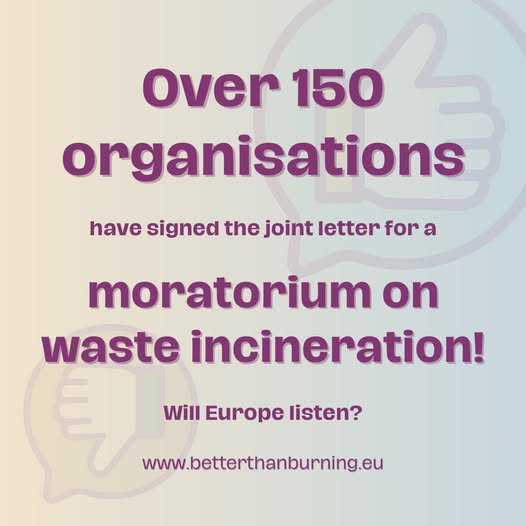 Zero Waste Europe spolu s množstvom organizácií z celej Európy vrátane Priateľov Zeme - SPZ vyzýva na okamžité zastavenie budovania nových spaľovní odpadu a rozširovania existujúcich kapacít. Spaľovanie odpadu je slepá ulička – prispieva k emisiám skleníkových plynov, brzdí rozvoj recyklácie a zadržiava nás v neudržateľnom modeli nadmernej výroby a spotreby.